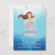 Este convite apresenta uma bonito mocinha de sereia com cabelo castanho-escuro com estrelas-do-mar cor-de-rosa como acessório de cabelo, um topo verde pastel e uma cauda rosa de sereia. Uma paisagem sob o mar com corais como fundo. Personalize facilmente com os detalhes do seu partido no espaço fornecido. Excelente para aniversários que amam sob o mar ou temas de fantasia de sereia.