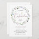 Este convite de confirmação religiosa e bonita apresenta uma bonito camada aquosa cheia de flores silvestres e uma cruz.