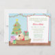 Um convite bonito e doce do chá de fraldas comemorar os bebês que chegam na época natalícia do Natal do inverno! O convite tem um bebê bonito dormir cosily em uma cesta ao abraçar um urso de ursinho pequeno. O bebê está sob uma cobertura do teste padrão da árvore de Natal. Uma árvore de Natal com as decorações de uma estrela e do ornamento, os presentes com vários padrões, e as decorações claras coloridas podem ser encontrados no fundo. No reverso é uma grinalda do Natal com um urso de ursinho com sinos de tinir. Personalize facilmente com seus detalhes do chá de fraldas.