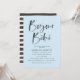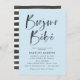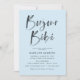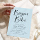Convite de chá de fraldas moderno e elegante com "Bonjour Bebe" em uma fonte de script de aquarela com letra de tendência, com um fundo azul claro. Personalize os convites para o chá de bebê com tema francês, adicionando seus detalhes de chá para um convite que certamente irá impressionar! O verso do convite apresenta um design de faixa de aquarela preta.