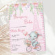 Este bonitinho Bonjour Bebe Paris inspirou um convite de chá de fraldas rosa será o começo perfeito para o seu chá de fraldas temático francês. Apresentando a Torre Eiffel, flores românticas e um elefante francês giro andando numa bicicleta de flor parisiense. Um convite romântico para uma menina chá de fraldas de Paris.