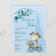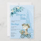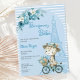 Este bonitinho Bonjour Bebe Paris inspirou um convite para chás de fraldas será o começo perfeito para o seu chá de fraldas temático francês. Apresentando a Torre Eiffel, flores românticas e uma girafa francesa giratória numa bicicleta de flor parisiense. Um convite azul romântico para um chá de fraldas de bebê de Paris.