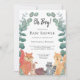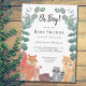 Este Chá de fraldas Casal é decorado com animais da floresta, eucalipto verde, e as palavras Oh Boy! Raposa, guaxinim, ouriço, coelho e esquilo bonitos, juntos, cercados de folhagem verde. Porque nós criamos a nossa trabalho de arte, você não encontrará esta imagem exata de outros designers. Original Watercolor © Michele Davies.