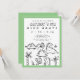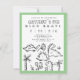 O convite para o aniversário desta criança é uma ideia excelente para uma criança que adora adicionar algum toque pessoal aos seus convites! A aniversariante ou o garoto pode colorir cada convite com marcadores antes de entregá-los aos seus amigos ou deixá-los se divertir colorindo seus próprios convites! O convite apresenta encantadores rabiscos brancos e pretos de dinossauros e plantas tropicais, e texto em uma mistura de simples tipografia moderna e cômica. Todos estão embrulhados numa armação verde-sábio, com a mesma cor no verso, que também mostra uma ilha tropical com palmeiras! Para personalizar este convite, basta clicar no botão "Personalizar" e alterar os detalhes para si próprio. Por favor note que para uma coloração mais fácil, o tapete não revestido ou o acabamento kraft são os melhores. Os marcadores permanentes também podem funcionar melhor! Divirta-se!