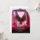 lingerie rosa bonito em um cabide almoçado com um script rosa que lê Festa de solteira na frente e na data, hora e lugar em um script rosa na parte traseira.
