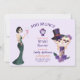 Chá de panela BOO BRUNCH moderno e de tendências no Halloween cores roxas e laranja. Placas gráficas de aquarela incluem uma noiva de esqueleto e um noivo tirando uma selfie! Uma noiva-a-ser com uma taça de globo ocular e vinho, uma garrafa de poção amorosa e no garçom inverso e spooktacular pronto para servir os convidados do chá de panela. Divertido e brilhante para o seu chá de panela.