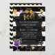 BOO! Convites de festas Doces de Halloween de Stripes Pretas e Brancas.