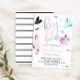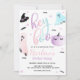 Uma festa de halloween não tão assustadora! Coloração d'água rosa, rosa, púrpura e azul Ei Boo Ghost Halloween convite com fundo preto e branco.