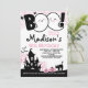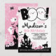Personalize este convite de aniversário de "Dia das Bruxas Rosa" com seus próprios detalhes!