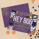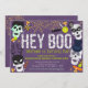 Celebre seu pequeno fantasma ou goblin com este festivo convite de aniversário do Dia das Bruxas de "Ei Boo"! Com uma equipe de esqueleto divertida, doces coloridos, teias de aranha e um fundo roxo ousado, este design dá um tom espetacular para uma festa de fantasia. Perfeito para festas de aniversário de outubro, eventos de casas assombradas, ou comemorações de crianças do Halloween. Personalize com o nome do seu filho, os detalhes da festa e as informações de RSVP em poucos minutos.