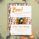 Boo Primeiro Aniversário Cogumelos Fala O Convite Para O Dia Das Bruxas. Um convite divertido para primeiro aniversario fotográfico com um lindo padrão de cogumelos cor de laranja outono, foto personalizada e texto. Engraçado mensagem Boo, nosso pequeno fantasma está virando um.