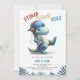 Um convite de festas de aniversário divertido e fofo para meninos com um tema de dinossauro, apresentando uma ilustração de aquarela de um dinossauro vestindo um boné e um fone de ouvido, numa jogada de dança, segurando uma caixa de expansão. Celebre o seu pequeno e selvagem convite com este estômago, compulsão e rugido que irá dar o tom para um tempo realmente selvagem na selva pré-histórica.
