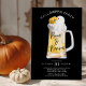 Este convite é divertido e apresenta uma caneca de cerveja com um fantasma segurando uma abóbora. As palavras "Boos e Brews" são escritas de forma divertida e festiva. É a maneira perfeita de convidar seus amigos para uma festa de Halloween onde eles podem vir vestidos com seus trajes e desfrutar de algumas botas.