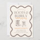 Sale-se e prepare-se para o passeio de uma vida inteira com nosso convite de Festa de solteira "Boots and Bubble" ilustrado à mão! Inspirado pelo espírito selvagem dos cowboys e pela beleza indomada do Oeste Selvagem, este convite é perfeito para celebrar o último rodeio da futura noiva. As intrincadas ilustrações feitas à mão capturam a essência de uma aventura nacional, com botas de vaqueiro, champanhe espumante e elementos rodeados rústicos. Cada convite é uma peça única de arte, feita com cuidado e atenção aos detalhes. Com 5" x 7", esses convites são impressos em estoque de cartão de qualidade superior, garantindo um toque luxuoso e uma impressão duradoura. A design rústica e encantadora combina o fascinante alento do Oeste Selvagem com o brilho glamouroso de uma celebração, fazer ideal para uma festa de solteira de país. A personalização é uma brisa com nossas opções de personalização fáceis. Basta fornecer o nome da noiva, os detalhes do evento e as informações de RSVP, e nós lidaremos com o resto. Quer você esteja planejando uma noite nua para sair ou uma vitória do campo, nosso convite "Boots and Bubble" define o tom perfeito para uma festa de solteira memorável. Reúna seus hóspedes e deixe as comemorações começarem com estilo e talento!