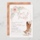 Boots Boho Pink e Chá de panela Faux rosa dourado, botas de caligrafia modernas e chá de panela borbulhante, com lindos arranjos cor-de-rosa floridos de cacto, grama pampas e um arco de linha. Essa botas modernas e esse chá de panela espumante é ideal para alguém que procura um design de convite boêmico.