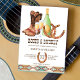 Boot e vagabundo convite para chás de casais de cowgirl ocidental. Botas de cowboy, champanhe, copos de champanhe, ferraduras para um chá de panela rústico do país ocidental.