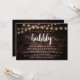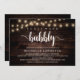 Placa de Chá de panela para caligrafia moderna (Boots and Bubble), em cordas de madeira escura rusticadas, luzes de design temática. Convide os convidados com este Cartão de Convite perfeito. Adicione os detalhes do seu chá de panela em texto correspondente.