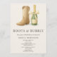 Boots and bubbly bridal shower invitation featuring a playful western inspired design with a chic bow accent and bubbly theme. Includes an integrated QR code that links directly to the gift registry for easy guest access. Perfect for western chic bridal showers, rustic celebrations, and fun pre wedding gatherings. Fully editable text with a clean, print-ready layout and customizable registry QR code.