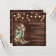 Adicione charme rústico ao seu casamento com este convite estilo country de casamento, com botas de vaqueiro, chapéu e flores, com luzes brilhantes de cordas penduradas de cima. Para casais que querem criar um casamento com charme rústico, isso é relaxado, informal, divertido e próximo à natureza. Perfeito para o verão ou para o casamento rústico. Disponível no impressão, como download digital ou ambos!