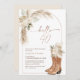 Boots Florais Boot Hello aniversário de 40 anos Convite para aniversário de 40 anos de Convite com botas de vaquinha, adoráveis arranjos florais beige, rumo à caligrafia moderna e forma arquitetada. Ideal para alguém que procura um convite para aniversário de 40 anos de temas ocidentais de cor neutra.