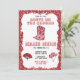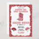 A plain white background framed by a red bandana pattern with paisley and other decorative elements. The pattern is visually striking, creating a border around the white area. Pink cowboy boots are positioned centrally, with a red folding fan