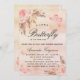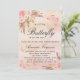 Para um chá de fraldas moderno estilo boho. Um fundo rosa dourado, rosado, rosado e roxo, com aspecto metálico. Decorados com ouro rosa e flores, rosas, erva-pampas e borboletas cor-de-rosa. Personalize e adicione um nome e detalhes da parte.