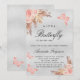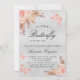 Para um chá de fraldas moderno estilo boho. Um fundo de olhar mal prateado. Decorados com ouro rosa e flores, rosas, erva-pampas e borboletas cor-de-rosa. Personalize e adicione um nome e detalhes da parte.
