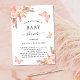 Para um chá de fraldas moderno estilo boho. Um fundo branco na frente. Decorados com ouro rosa e flores, rosas, erva-pampas e borboletas cor-de-rosa. Personalize e adicione um nome e detalhes da parte. Fundo: fundo cor-de-rosa pincelado e borboleta.