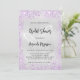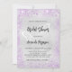 Um chá de panela moderno e elegante. Fundo de aspecto fino prateado decorado com lavanda, faíscas roxas e uma borboleta grande. Personalize e adicione um nome e detalhes da parte. Letras pretas coloridas.