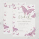 Modelo moderno, na moda, romântico de chá de panela com tema de borboleta com quadro de feitiço e borboletas pintadas manualmente, aquarela em roxo e borboleta de ouro (é um efeito digital, não uma folha real). Romântica e elegante, na moda e chic, vai apelar à noiva e ao noivo modernos que querem uma atmosfera refinada mas relaxada, talvez no campo, num jardim ou outro lugar onde a natureza tem um papel importante.