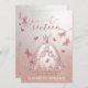 Adorável vestido encantador de borboleta rosa ouro glittery ombre Doce 16 convite.