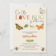 Este design apresenta um tema chá de fraldas "Our Little Love Inseto Is On The Way" com a ilustração de insetos bonitos incluindo: borboleta, inseto de senhora, mariposa, abelha, lagarta e muito mais. Este convite pode ser facilmente personalizado com os detalhes do evento pessoal.