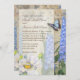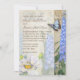 Para o amante da natureza que está planejando um tema de casamento ao ar livre, country, estilo jardim rústico, tem um local do celeiro ocidental ou simplesmente ama flores! DESIGN: O fundo e trabalho de arte de fronteira para este elegante, formal, mas um pouco rústico convite para o casamento é pintado manualmente por Audrey Jeanne Roberts. O fundo é um pergaminho de estilo de acabamento de estalos, vestidos e aflitos, envelhecido. Lindas torres de flores azuis profundas e delfinium alcançam o céu em várias tons de azul do céu para o martelo. Uma flor branca de papoila Matilija (muitas vezes chamada de "ovoflores fritas" ou "papoilas de flor de papel") foi pintada em aquarelas, ao vivo dos próprios jardins de Audrey Jeanne. Uma borboleta Morpho Azul paira sobre uma Dragonfly Damselfly que está descansando na papoila. No verso está a mesma imagem sem a aparência e borda semitransparentes do velo. Está disponível um conjunto de convites de casamento completo e correspondente para todas as suas necessidades de casamento, chá de panela ou outras ocasiões especiais e festas. SELEÇÃO DE COR: Este design apresenta curvas naturais, tons castanhos e tons beges com creme, branco, azul claro e azul-céu.