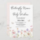 Borboleta de flor selvagem Beija Bebê Deseja Chá de fraldas Convite à borboleta Chic beijos e o bebê deseja convite ao chá de fraldas com uma delicada ilustração de flores silvestres e borboletas.