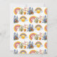 Um belo cartão de aniversário com muito sol e arco-íris, especialmente para crianças. O design apresenta arco-íris, sol sorridente, sol, flores de primavera, borboleta, beija-flor, verde e folhagem, elementos perfeitos para um jardim de primavera. Ideal para o convite de aniversário de criança. O texto pode ser facilmente personalizado.