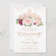Elegante e na moda, flores florais cor-de-rosa pinceladas com borboleta de ouro verde e rosa e moldura tiara Convites de Quinceanera. A escolha perfeita para comemorar o aniversário de 15. Fácil de personalizar o modelo de convites da quinceanera com todos os seus próprios detalhes de eventos.