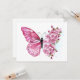 Arranjo de flores de borboleta cor-de-rosa com cereja japonesa cor-de-rosa floresce em fundo branco.
