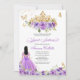 Doce 16 convites em tons lilás e lavandas de púrpura com borboletas de ouro e uma bela tiara. Visite o compro para obter mais variações, incluindo garotas em vestidos com tons de pele diferentes e combinações de cores. Também uma versão Quinceanera desta design.