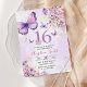 Borboleta Floral Roxa e Dourada 16º Convite de Aniversário