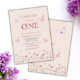 Torne o seu bebê no primeiro aniversário inesquecível com este lindo convite de festas floral rosa. O design é inspirado na boêmia e apresenta bonito flores silvestres e borboletas de aquarela, fazer-as na moda e charmosa. Use as ferramentas de design para personalizar o texto.