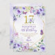 Convites Borboleta Geométrica Roxa e Dourada 17º Aniversári