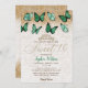 Elegante Emerald Green Dourado Tiara Butterflies Sweet 16 Convite