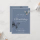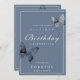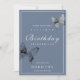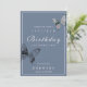 Um belo convite de aniversário para adultos em azul ardente com borboletas pintadas à mão contendo um padrão de rosa floral. Personalizável para qualquer marco de aniversário