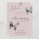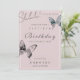 Um belo convite de aniversário para adultos surpreendentes, moderno, em cor-de-rosa rosa empoeirado, com borboletas pintadas à mão, contendo um padrão de rosa floral. Personalizável para qualquer marco de aniversário