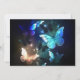 Fabulosa, brilhante, azul e amarela, borboleta noturna sobre fundo escuro.