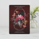 Boho Gótico Elegante Rosa Borboleta Borboleta Floral Rosa Botânica Monograma Convite de Casamento Vermelho Escuro