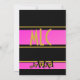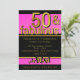 Vibrante, captura de olhos, convite de aniversário de 50 anos para na moda e glam com detalhes de borboletas negras e ouros. As borboletas, 50 e fabulosas, estão numa cor de ouro brilhante e brilhante com sotaques traseiros. Esses elementos de design são colocados contra um pano de fundo rosa gradiente que varia de um rosa quente vívido a uma cor rosa mais leve, dando-lhes uma sensação 3D. Os cinquenta e fabulosos, em particular, saem da página. O texto personalizado para você personalizar o convite está em uma fonte dourada sans serif contra um fundo preto, de modo que é fácil para seus convidados obter os detalhes importantes da 50ª celebração. O motivo das borboletas é repetido no verso do convite, assim como um espaço para você adicionar um monograma ou outro texto personalizado, se preferir. O monograma também é dourado contra o gradiente rosa. Ao longo do design há linhas de cor do ouro. O resultado é um glamouroso e elegante convite de 50 anos em rosa, ouro e negro para celebrar cinquenta e fabuloso.