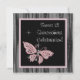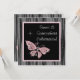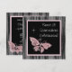 Convite de festa de Quinceanera de 15 anos rosa jóia borboleta rosa e preto.