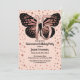 Este convite de aniversário elegante, glamouroso e feminino da quinceañera é perfeito para a jovem adolescente da moda e na moda. Ele apresenta uma ilustração feita por uma borboleta em preto e falso brilho rosa dourado cintilante com um gigante, "15" em folha de ouro rosa falso sobre o confete de brilho rosa dourado e um simples fundo cor-de-rosa. É moderno, único, moderno, bonito e fofo; o design perfeito para o seu dia especial. ***NOTA DE DESIGN IMPORTANTE: Para qualquer solicitação de design personalizada, como solicitações de correspondência de produtos, alterações de cor, mudanças de posicionamento ou qualquer outra solicitação de alteração, clique no botão "MENSAGEM" ou envie um e-mail ao designer diretamente em lafemme.art@gmail.com. Você pode até enviar um e-mail para ela solicitando um design completamente personalizado e novo.