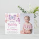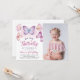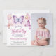 Borboleta Púrpura Rosa Raparigas Aniversário Foto Convite